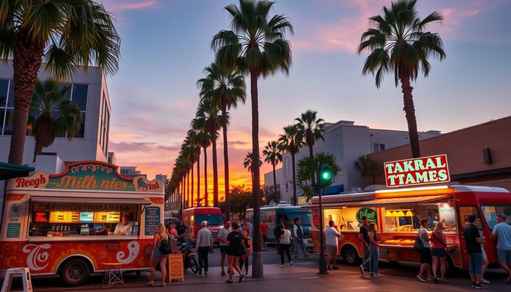 Los Angeles is at the heart of the los angeles food trucks movement. This reflects the city’s rich cultural diversity. The streets buzz with street food innovation and multicultural cuisines, thanks to the food truck scene.