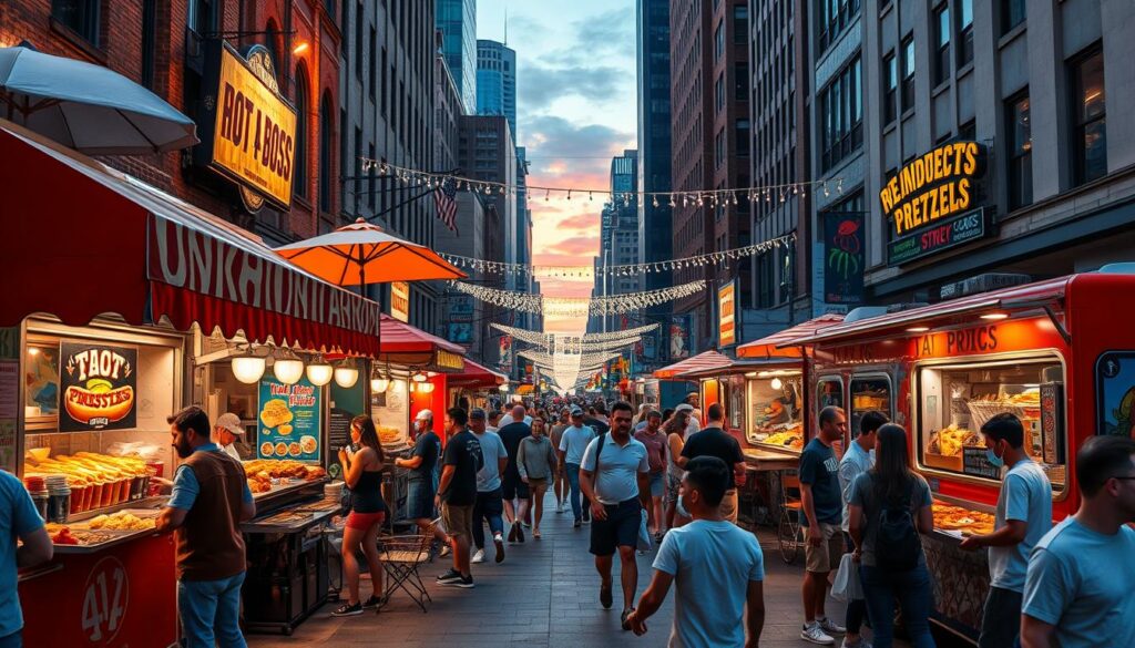 Across the United States, the street food scene is rich and varied. It showcases the southern cuisine, midwest comfort food, and west coast fusion. Each area offers a unique taste adventure for those who love street food.